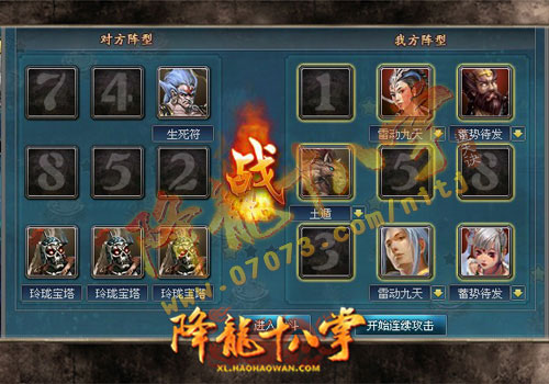 降龙十八掌阵法可以在面对不同的强敌,配合不同的阵法,英雄PK比的是运筹帷幄。更多降龙十八掌攻略尽在07o73,关注降龙十八掌,关注07073!~