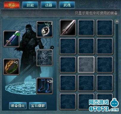 在英雄的装备界面有装备强化及宝石镶嵌的功能来进行装备属性提升。