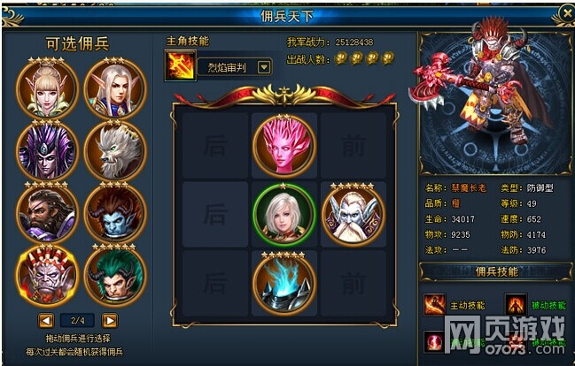 7、在闯关的过程中,可以随时点击"更换佣兵"按钮,调整出战的佣兵及其站位。