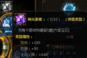 当所有部件的极品宝石全部激活并升级为六品时,还会出现“神光贵胄”套装属性。