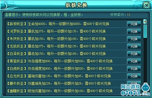 2)每400个妖核碎片可在妖核兑换处兑换金色妖圣。