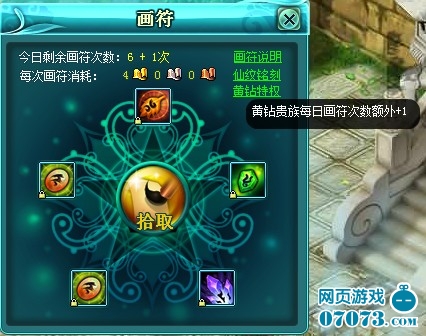 1)从QQ空间或朋友网登录的黄钻贵族玩家,获得每日画符次数增加一次的特权。