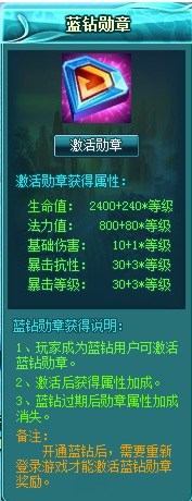1. 蓝钻/黄钻勋章——蓝钻或黄钻用户从对应的渠道登录游戏时,可领取对应的勋章,勋章将给您的角色带来强力的属性加成。