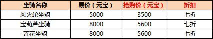 2、热门极品坐骑最低仅售7折!(购买方法:在游戏商城——坐骑相关类直接购买,价格已修改为7折抢购价!)
