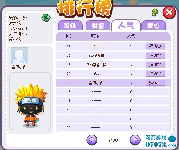⑤每天只有前50次被拜访才会增加人气值