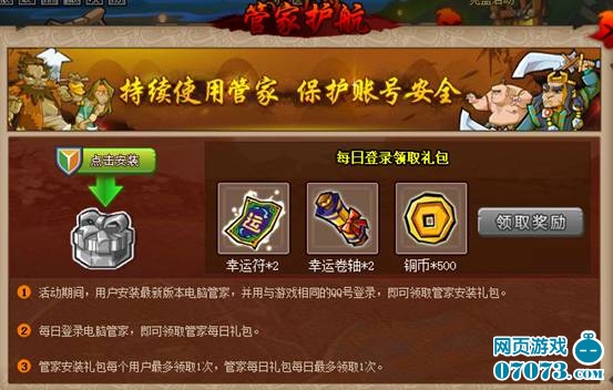 每日登录管家还可领取管家每日礼包,活动期间每日限领1次。