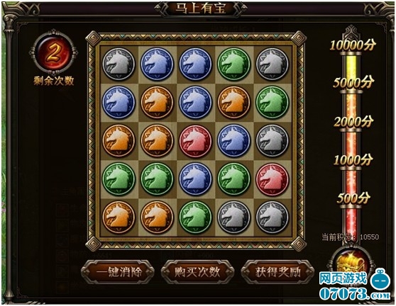当五个颜色相同的马在一起就会消除,获得四个坐骑培养或升阶材料,50积分。