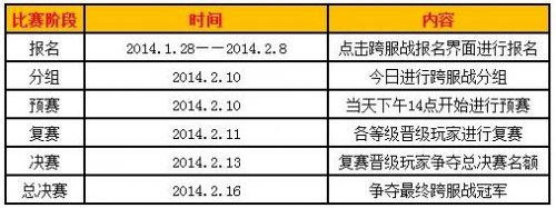 1、每一届跨服战将一共举行5天,整个比赛分为分组、预赛、复赛、总决赛以及决赛四个部分