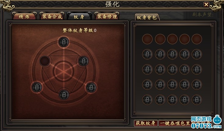 1)点击强化按钮中的纹身选项弹出如下界面: