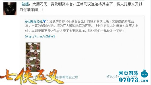 投稿得礼品连日来七侠五义OL爆笑漫画受到网友的火热关注,看似置身之外的包大人却是躺着中了一枪又一枪,由于自身的黑被展昭和欧阳春屡次调侃,包大人终于再也忍不住了,穿越千年时光到现代登陆微博,誓要拿下展昭、欧阳春等人!