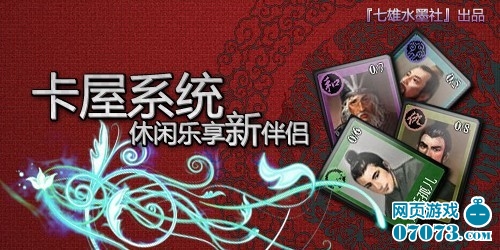 各位英雄侠少闯荡在《七雄争霸》中,使用卡屋系统可尽显往银鞍照白马的潇洒,也可让威风凛凛历史名将名臣伴随身边,卡屋系统将会带给你更多样化的游戏选择,从此争霸之途上不再寂寞。