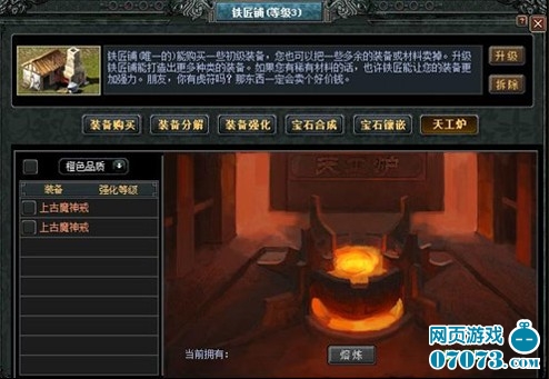 铁匠铺“天工炉”开启,天火的高温能熔炼高级装备,以获得升级高级科技所必须的“七星砂”!