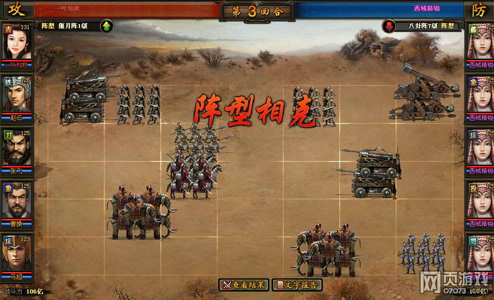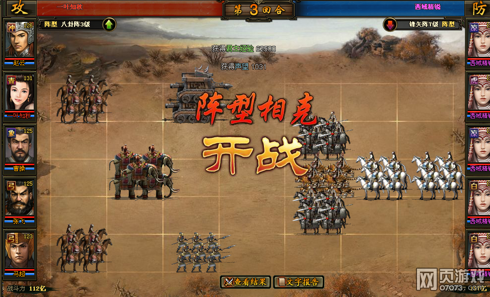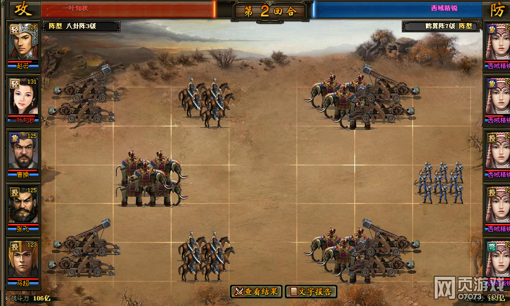 这一关后排我放床弩的原因是,在敌方的藤甲消耗没了之后,可以高效率的击杀投石和床弩。前排放铁骑是我觉得,它既可以防止对方床弩的伤害,也可以快速的杀掉对方的藤甲。