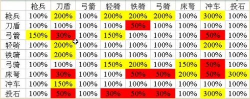 而能充分发挥这个特长的非长枪兵莫属了,这里楼主并不是空谈下面附上一个兵种相克表