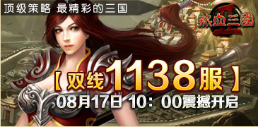 乐都网《热血三国2》将于8月17日(周一)上午10:00准时开启官方服务器[双线1138服]。全新开服活动震撼来袭!