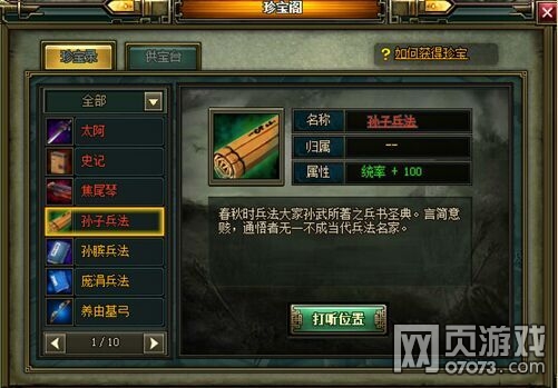 通悟孙子兵法者,无不成为当代兵法大家,乐都《热血三国2》中装备珍宝'孙子兵法",所有将领都会获得100点的统率属性,堪称逆天级宝物。但三国世界征伐不断,拥有珍宝也要保护好珍宝,探宝令占领或者掠夺玩家主城,都可以抢夺其他玩家的珍宝,玩家城池民心越低获得珍宝概率越大,当城池民心为0时,普通占领该城池都有几率夺取该玩家的珍宝,一定要慎重啊!