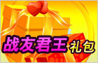 战友君王礼包累计获得3000积分即可领取。封测服务器不能使用,仅限正式运营后的“热血一区”“热血二区”“热血三区”使用,内含价值3000元宝的游戏内道具,另附送30级紫色装备一套,请在2012年3月1日之前使用,逾期失效。兑奖奖品