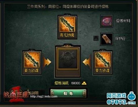 决战沙场不退缩,追求极品无止境。热血三国2熔炼系统帮你再造极品装备,同时,保留主装备效果:炼化、强化、精炼、镶嵌宝珠,一个不少!从此神兵利器在手,天下江湖我有!