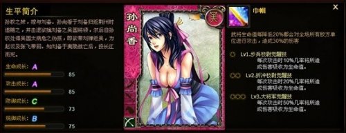 一语“周郎妙计安天下,赔了夫人又折兵”,让我们见识到了诸葛亮的先知卓见,也让我们认识了一个巾帼不让须眉的奇女子:枭姬孙尚香。在历史上孙尚香喜好武艺,手下侍女皆带刀具,常以与人击剑为乐。因此在《热血无双》之中将其封赏技能设定为攻击后有一定概率吸收此次攻击造成的伤害,这是一个非常恐怖的技能,再与孙尚香原先的技能巾帼进行配合,简直是就是新型的人形兵器啊