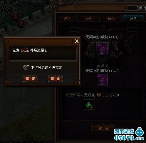 ●在每次追星操作时可以使用非绑定元宝补足追星石,优先使用追星石。