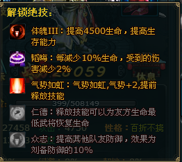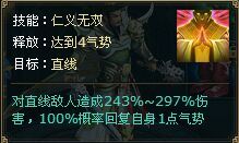仁义无双:对敌方直线造成伤害,并且百分百回复自身1点气势。