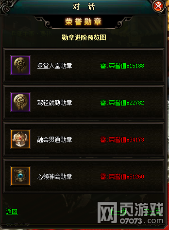 《三国传奇》荣誉可以每天的日常任务中获得,获得荣誉后,可到王城武选司处升级勋章。勋章升级后可获得更强大的属性哦。勋章升级随着等级的提高需要的荣誉也更多。