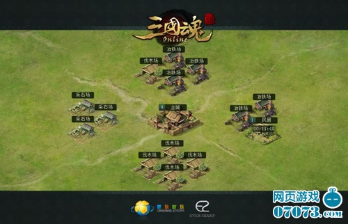 在游戏的初期,百业待兴,我们的国力此时显得异常地薄弱,因此,抓紧资源生产,励精图治,成为了我们的首要目标,而城池升级、设施建造都要耗费大量的铁矿、石料和木材,所以,这时的我们应着重建造冶铁场、采石场及伐木场,积累资源,以图长久之计。