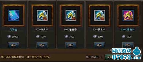 6、同时黑市每提高10级,就会刷出新的东西哟。每天还赠送俩次免费刷新呢。
