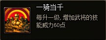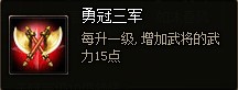 1、勇冠三军,每级加15点武力。(65级后此天赋优于孔武有力)