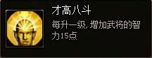 2、才高八斗,每级加15点智力。(65级后此天赋优于算无遗策 )