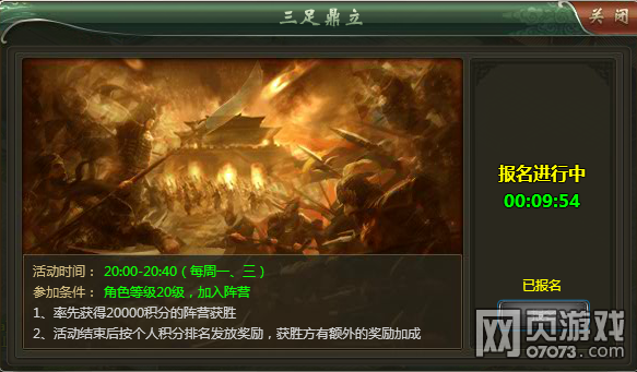 报名时间结束后,已经报名的玩家可以进入战场参加三足鼎立。