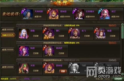 当前威望将决定您可以招募哪些武将, 努力提升威望即可招募更多更强力武将。