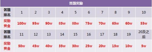2. 答题排名奖励根据玩家答题正确数排名,如答题正确数一样玩家可并列排名,例5个玩家全部答对,即这5个玩家均领取第一名奖励。