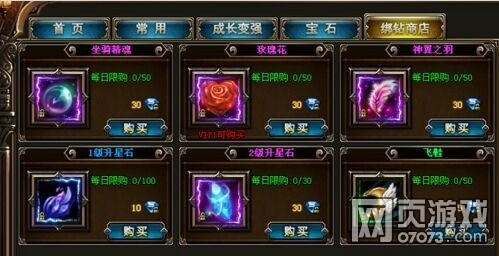 消费200个绑定钻石可以获取20点活跃度,花钱可以去商城,商城中给玩家朋友专门准备了一个可以消费绑定钻石的界面,一般在这个界面笔者都是消费神翼之羽和坐骑精魂,这样每天都能对我们的坐骑和神翼进行培养,战斗力提升比较快。