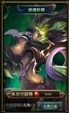 战魂是诸神黄昏中提升被动技能重要的道具,所以战魂当然是多多益善,现在新推出的战魂祈福活动,玩家除了每天刷怪可以获得战魂外,祈福也可以获得大量的免费战魂。战魂一天可以免费获得5000点。升级vip后,玩家可以提升获取战魂的次数。