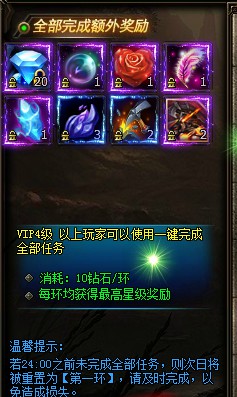 2.日常任务:分10环,完成度分10星,可以获得大量的经验和金币。