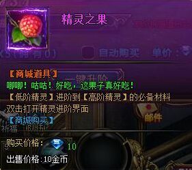 精灵之果在使用后可以提高精灵的祝福值,当祝福值到达一定时,精灵就可以进阶了,精灵之果的唯一获取方式是在商城购买,目前一个精灵之果的价格是10钻石,拥有精灵的玩家快去获取吧。