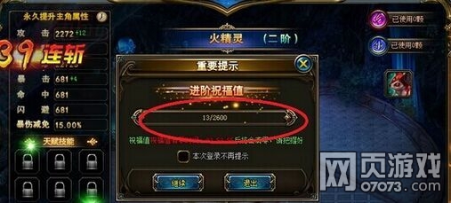 首先点开进阶画面,用送的升阶材料或者自己打的材料点击一下进阶图标,然后退出,这时会弹出一个对话框 ,上面会显示此次进阶总共会需要多少祝福值,剩下的事情就是简单的加减乘除。