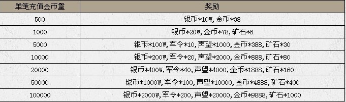 1.该活动在新手结束后开启,持续7天.活动仅计算单笔充值,不计算累计充值金额.
