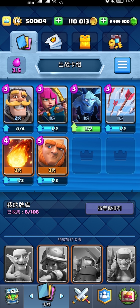 3、你需要对自己的卡牌进行升级,让自己的卡牌变得更加强力,