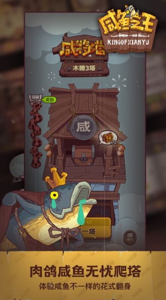 1、玩家将携带着咸鱼的伟大梦想,不断驰骋在精彩刺激的爬塔玩法之中,