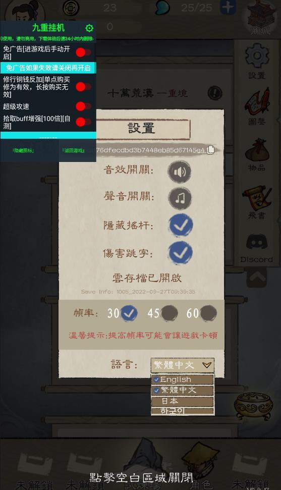 免广告获取奖励,MOD菜单,设置按钮→setting→language→繁体中文