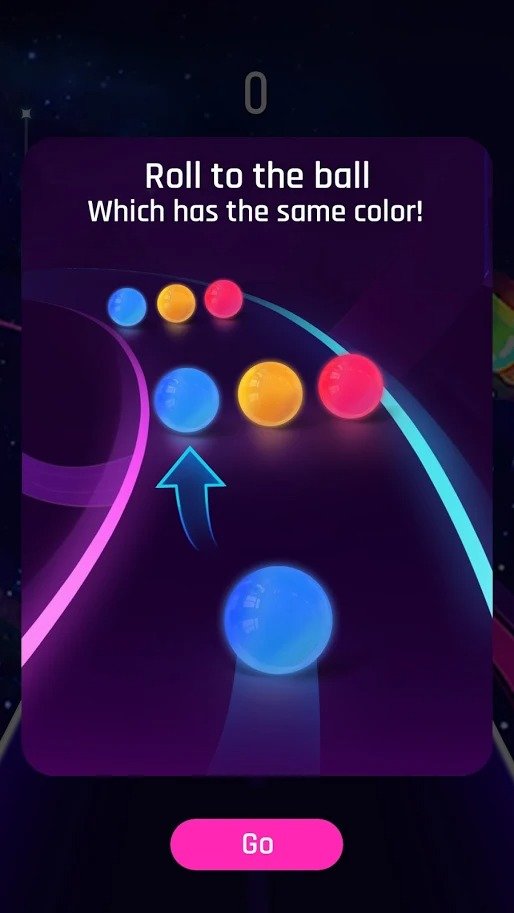 1、游戏开始后,你需要左右滑动屏幕控制彩球移动,撞击更多与彩球颜色一致的小球,这样可以顺利前进。