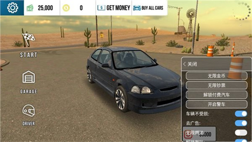 1、去广告、无限燃油、车不损坏、+100w钞票、+1w金币、解锁所有车辆、解锁W16引擎、解锁购买警车、解锁喇叭(物理撞击效果存在,并不会导致车辆真正损坏)