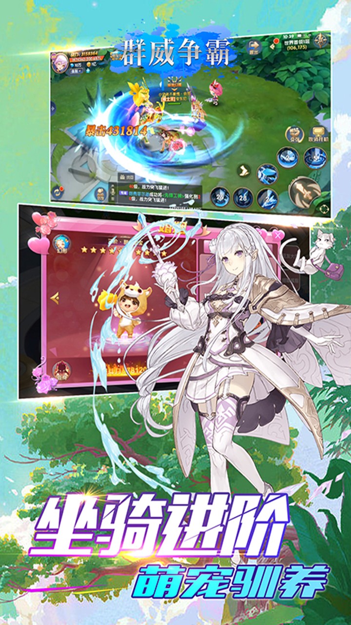 《群威争霸》是一款非常好玩的日系二次元画风MMORPG游戏,你将进入一个奇幻的大陆之中,并成为对抗不死族的冒险者,所以你需要不断的召集伙伴,收集装备,提升等级,驯养宠物,在各种方面提升你的能力,并借助巨龙的力量来对抗魔王。群威争霸有着超多的玩法系统,而你也可以自由的探索这个奇异大陆,有趣的冒险在等着你。