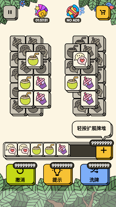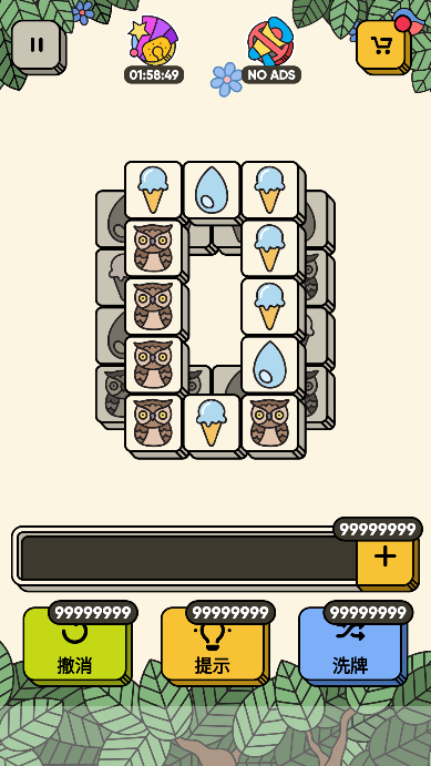 《3tiles无限道具最新版》是一款清新休闲的三消益智游戏。3tiles无限道具最新版游戏破解了无限道具,进入游戏即可获得,而且去除了游戏中所有的广告,玩家在游戏过程中不会有任何广告弹窗。玩家们在其中只需要将相同的方块进行消除即可,相当考验的大家的眼力,多种关卡等你解锁,在指定的时间消除完便能成功到达下一关。感兴趣的玩家快来下载体验吧!