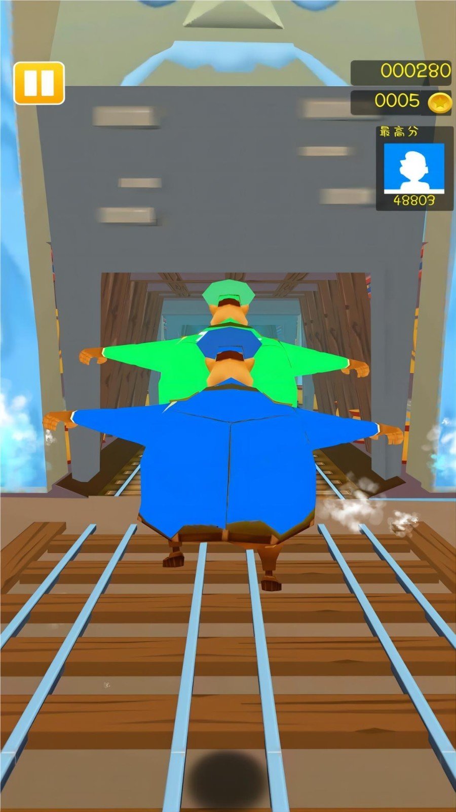 3.在复杂的酷跑赛道上收集金币,玩家可以随时选择正确的路径,保持酷跑。