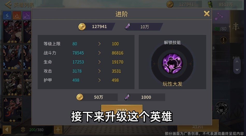 3、合理利用资源提升英雄属性,增强自己的战斗力。