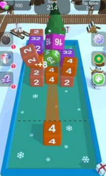 4、点触滑动可控制屏幕旋转,相同的数字发射就能翻倍合成!