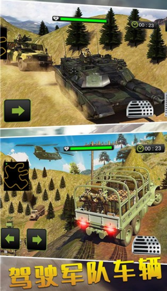 1、大型卡车,作战坦克,还有军用装甲车,都是可以让玩家自由尝试其中的挑战,